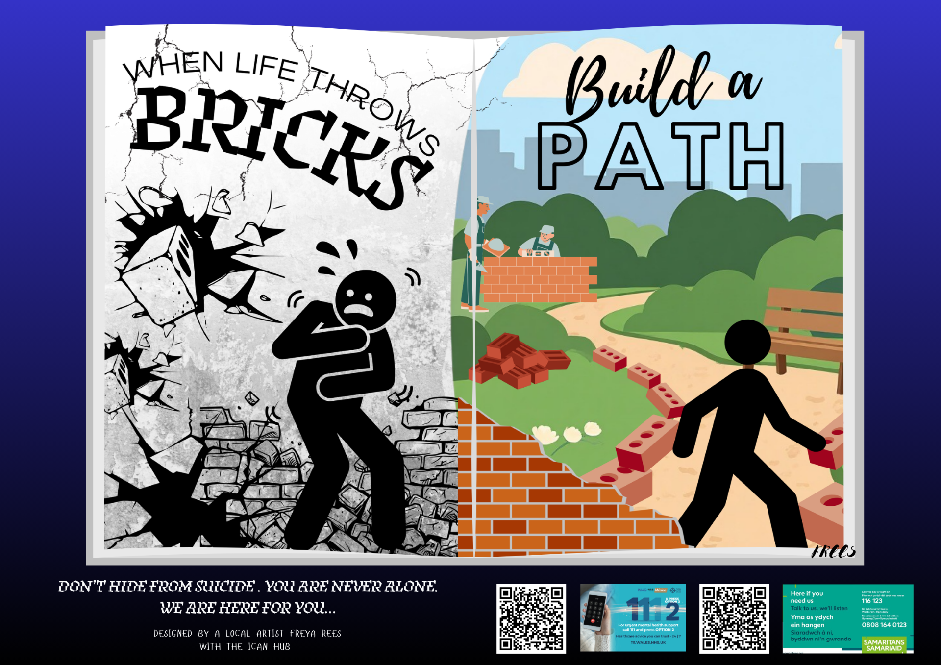 A new piece of Freya’s inspirational artwork was designed to represent the ‘Build a Path’ campaign, alongside the slogan, ‘when life throws bricks, build a path’.