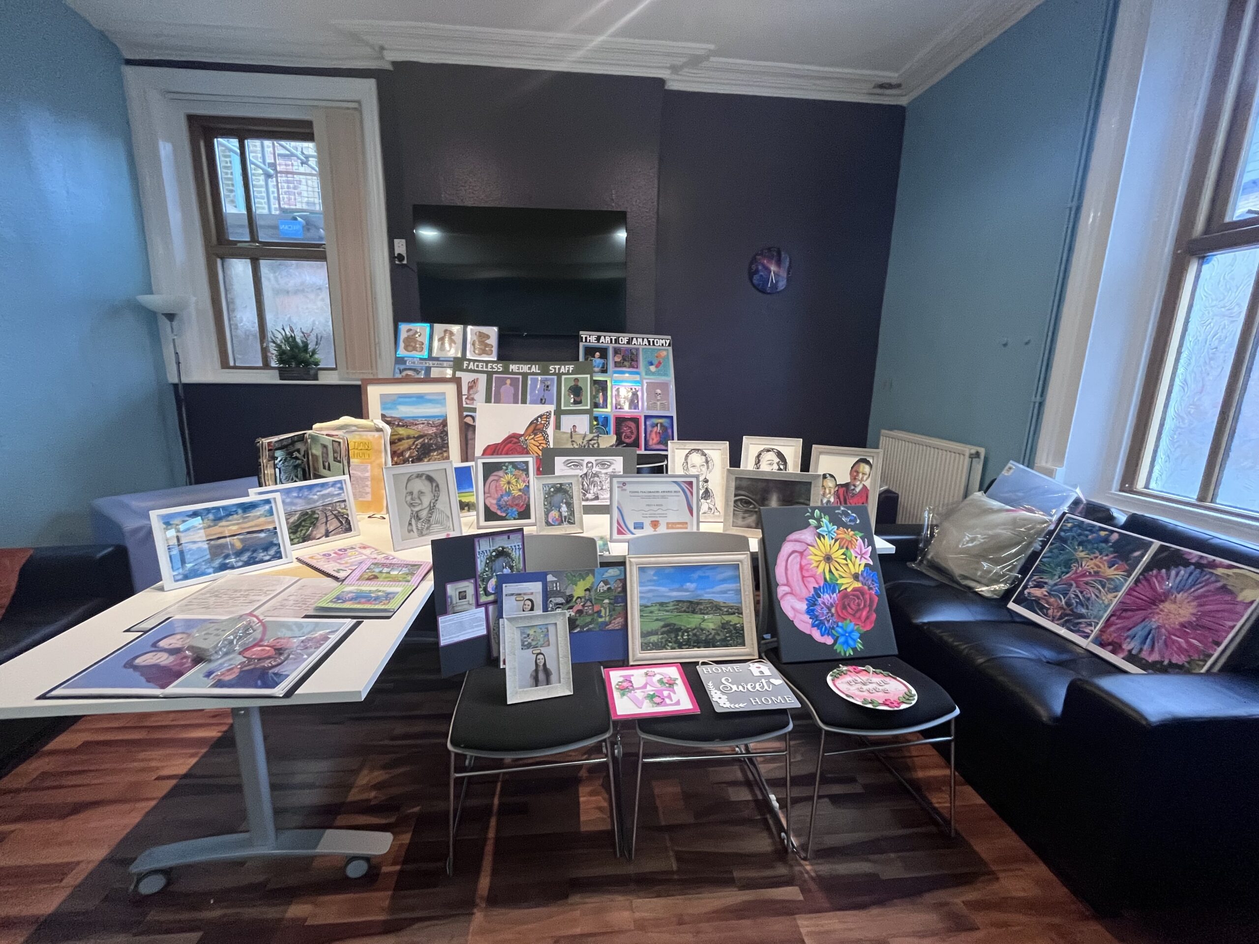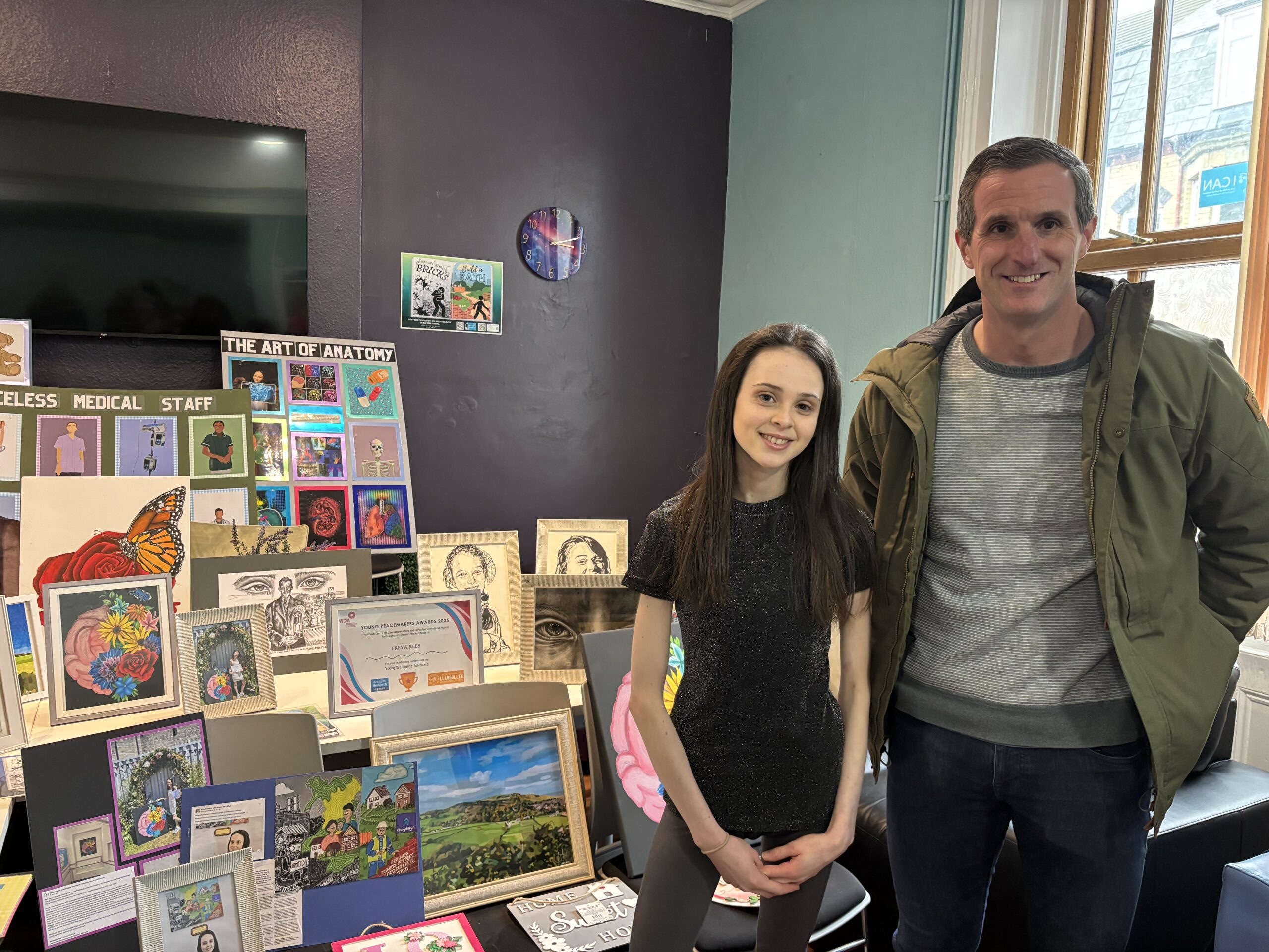Following a recent poster campaign organised as part of the Suicide Prevention Under-served Communities group, partners across Denbighshire and the local community came together along to support talented Rhyl artists, Freya Rees, 19 and Kenny Bond, 58. Their artwork formed part of a thought-provoking exhibition of original pieces, designed to inspire conversations around the importance of mental health awareness.
