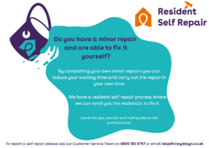 If you are interested in completing your own self repair, please get in touch with ClwydAlyn’s Contact Centre on 0800 1835757, where a member of the team will talk you through the process.